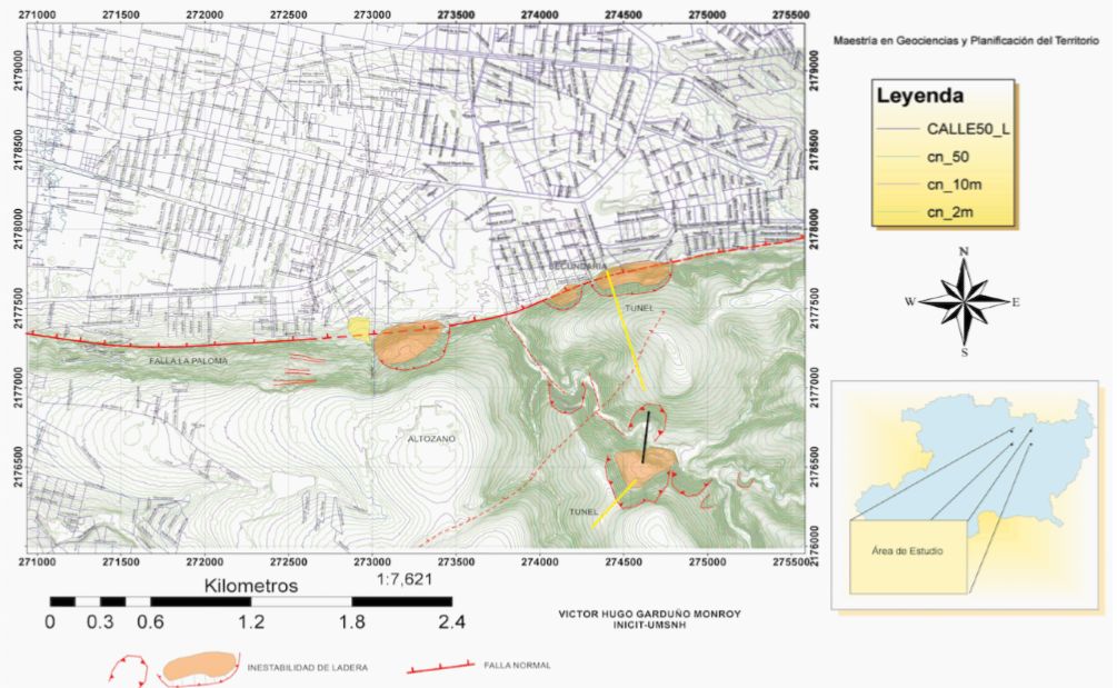 3. UNIVERSIDAD MICHOACANA, recientemente la Universidad Michoacana, mediante su maestría en Geociencias y Planificación del Territorio, reedito un mapa que aparece en varios estudios anteriores de la propia UM, en los cuales, se observa que la zona que se derrumbó era marcada como inestabilidad de ladera al igual que la zona donde se construye el actual túnel 2. Zona