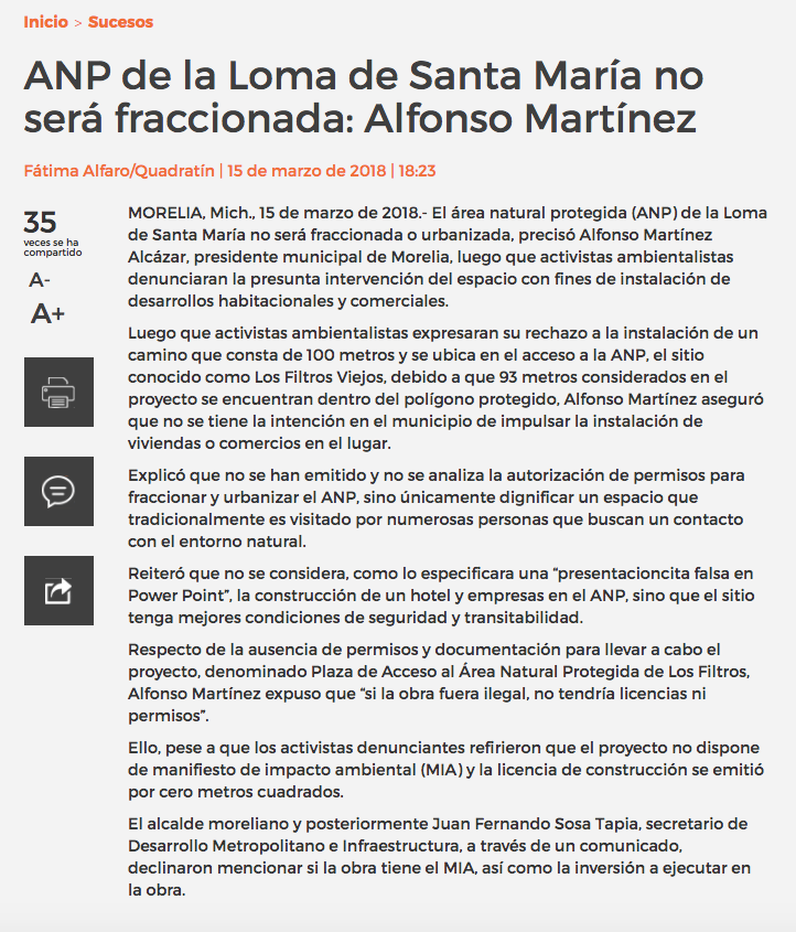 Hace más de un mes, dimos a conocer que el Ayuntamiento de Morelia había autorizado la subdivisión de un terreno de 78 hectáreas en 43 fracciones dentro del polígono protegido de la Loma de Santa María.